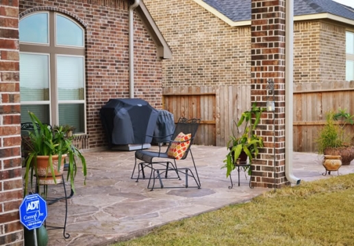 Spending time on a rocking chair while catching up with your loved ones is an incredible way to unwind. In this set up, everyone gets their own rocking chair and space while still being close together. This outdoor living room truly rocks in making this small patio a valuable extension of the home life.