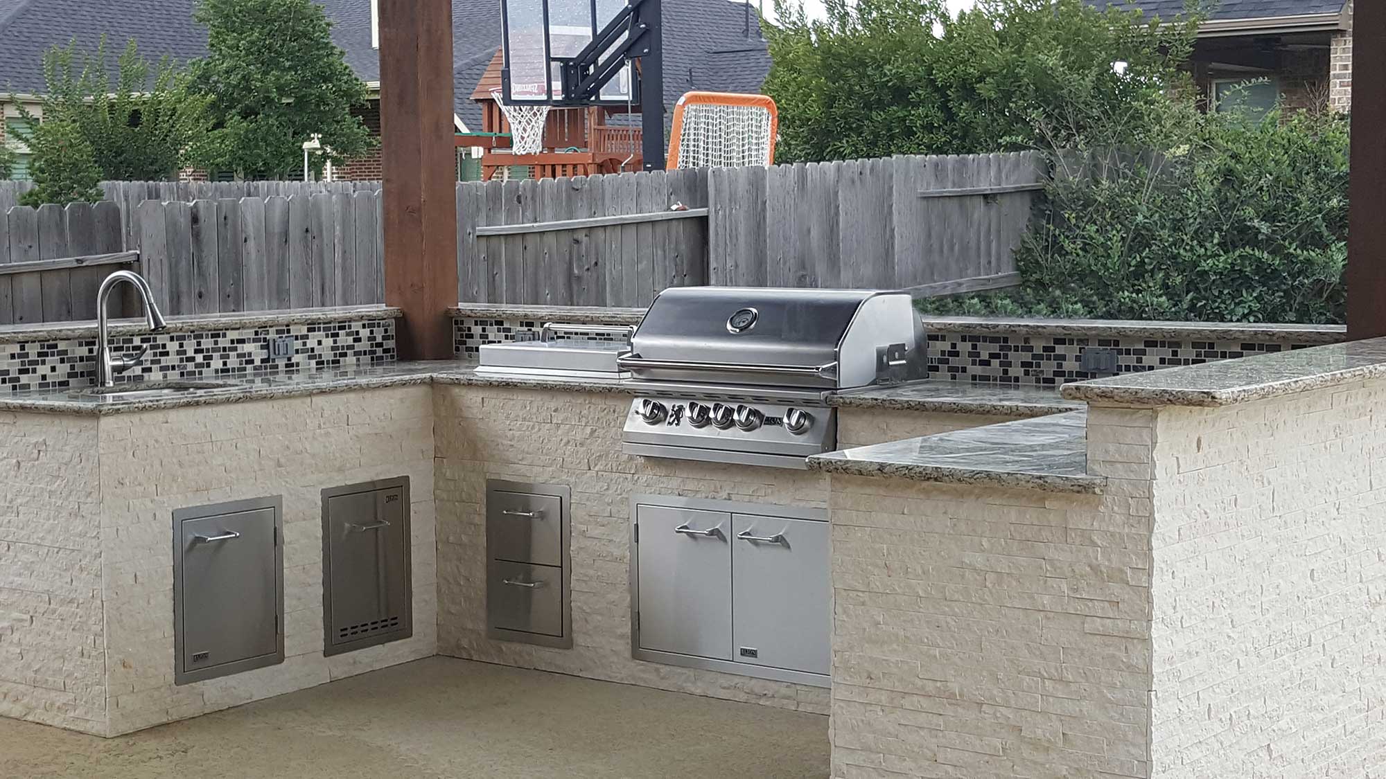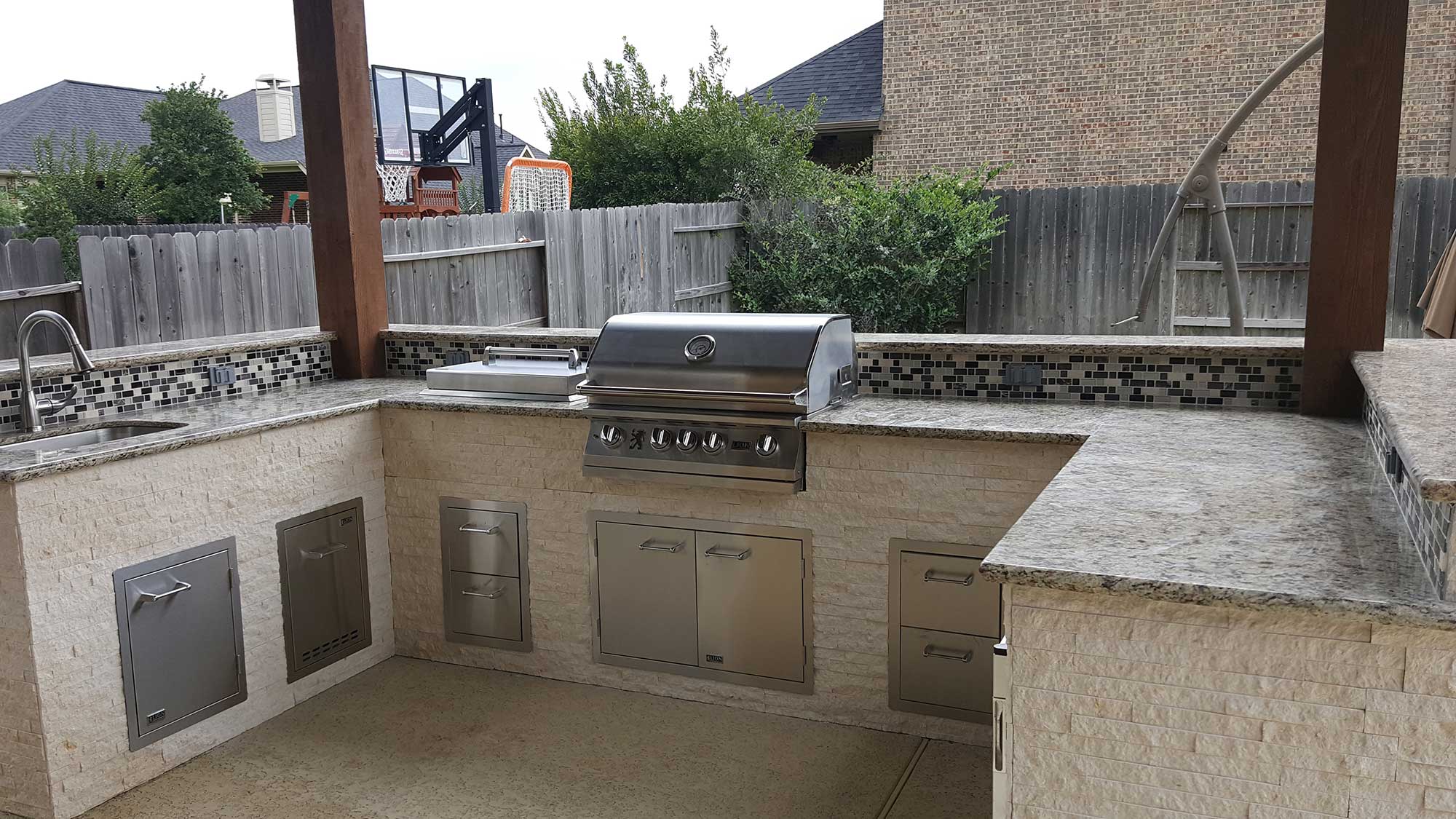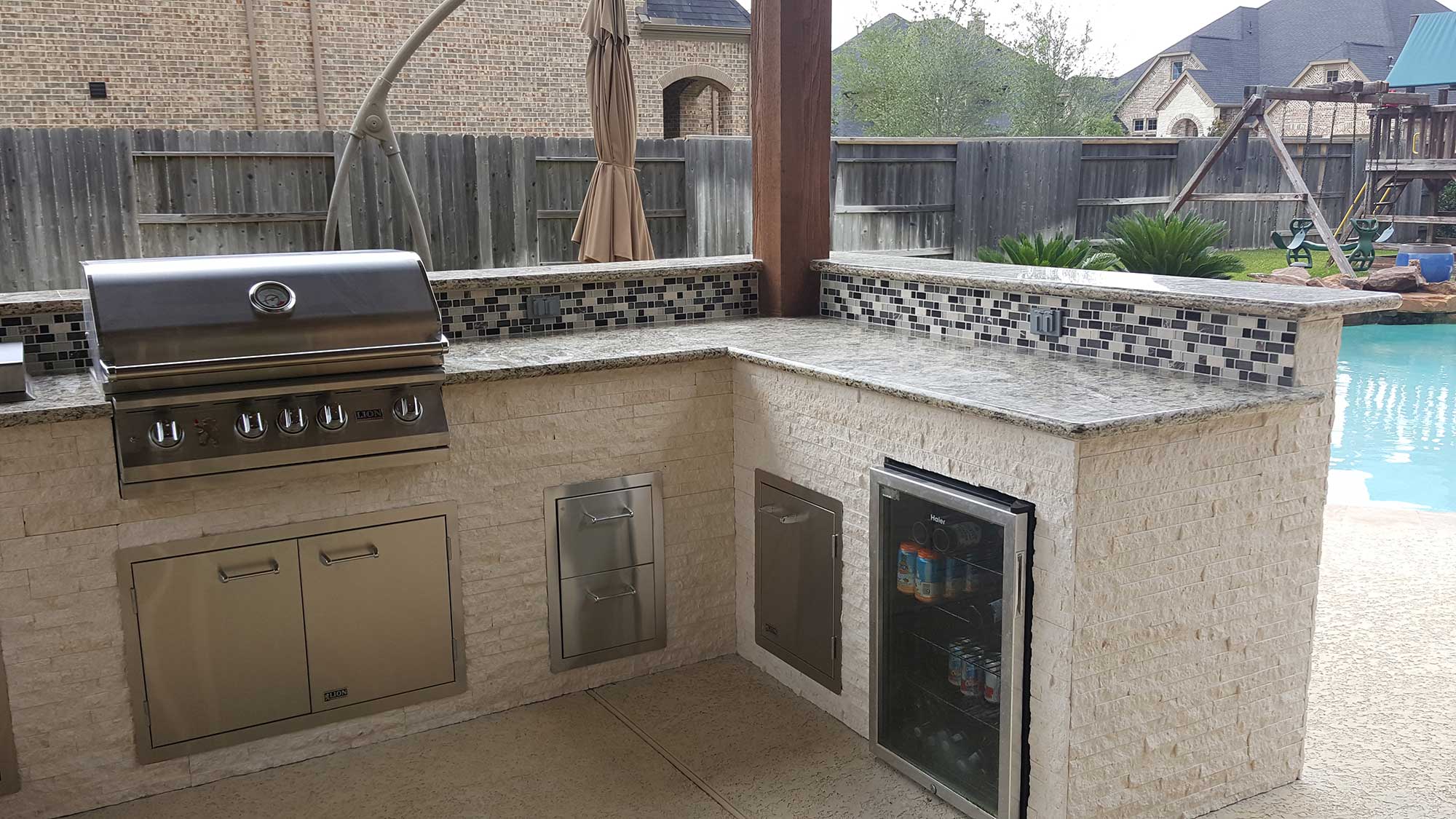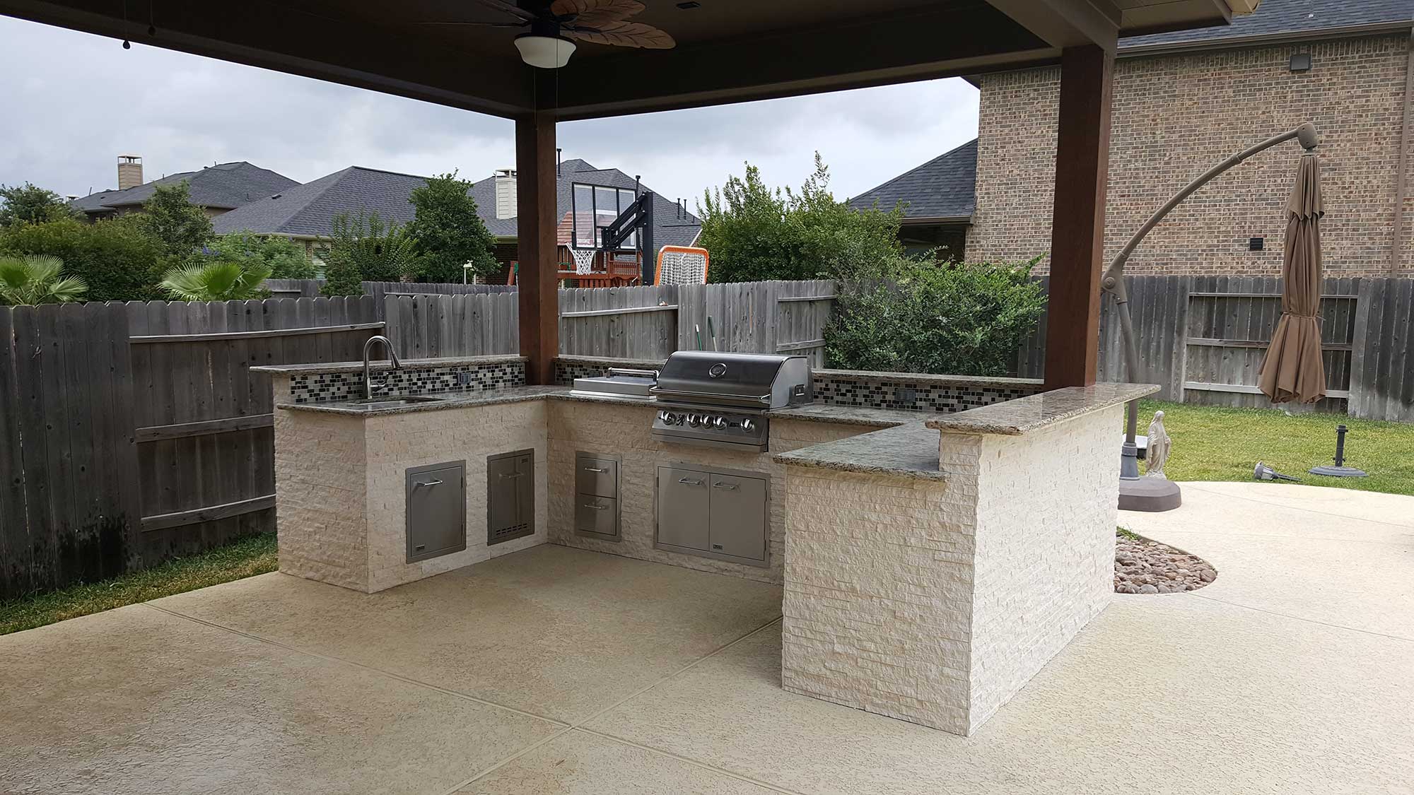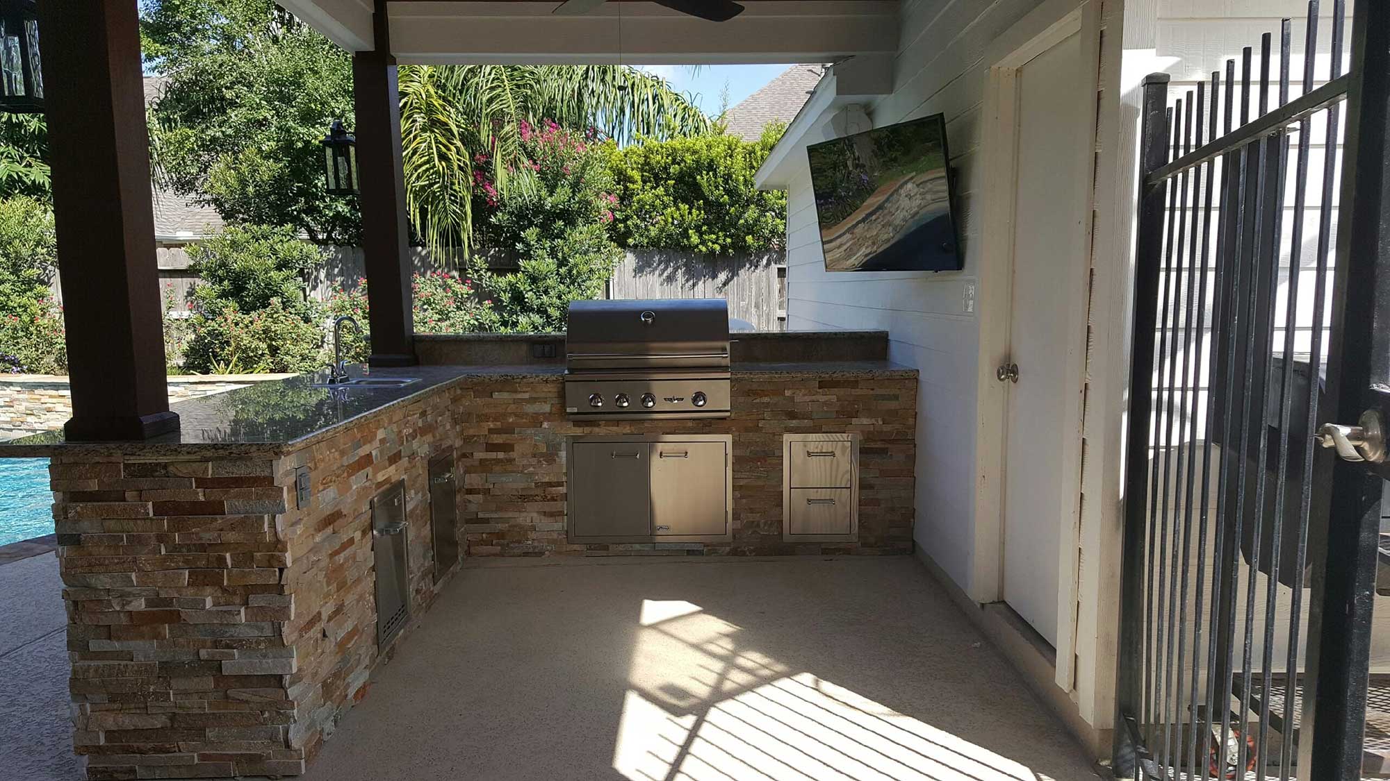 An outdoor kitchen remains to be one of the top desirable outdoor additions this year. It adds a brand new meaning to your outdoor lifestyle when it comes to dining al fresco. From a simple grilling station to a fully functional outdoor kitchen, Patio Creations has completed many different outdoor kitchen projects.