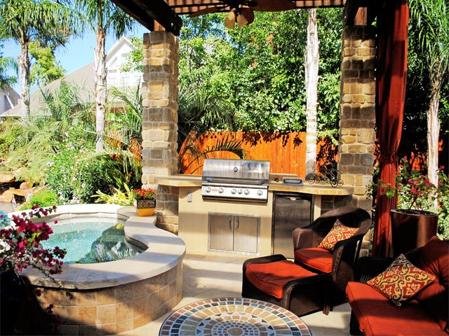 When thinking of a simple backyard kitchen design idea, don’t forget to list the features you would like to include such as grills, ovens, and side burners.